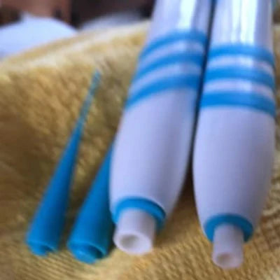 Attach the cone to the device, then slide a band down the cone onto the device. Once the band is in place, carefully remove the cone.